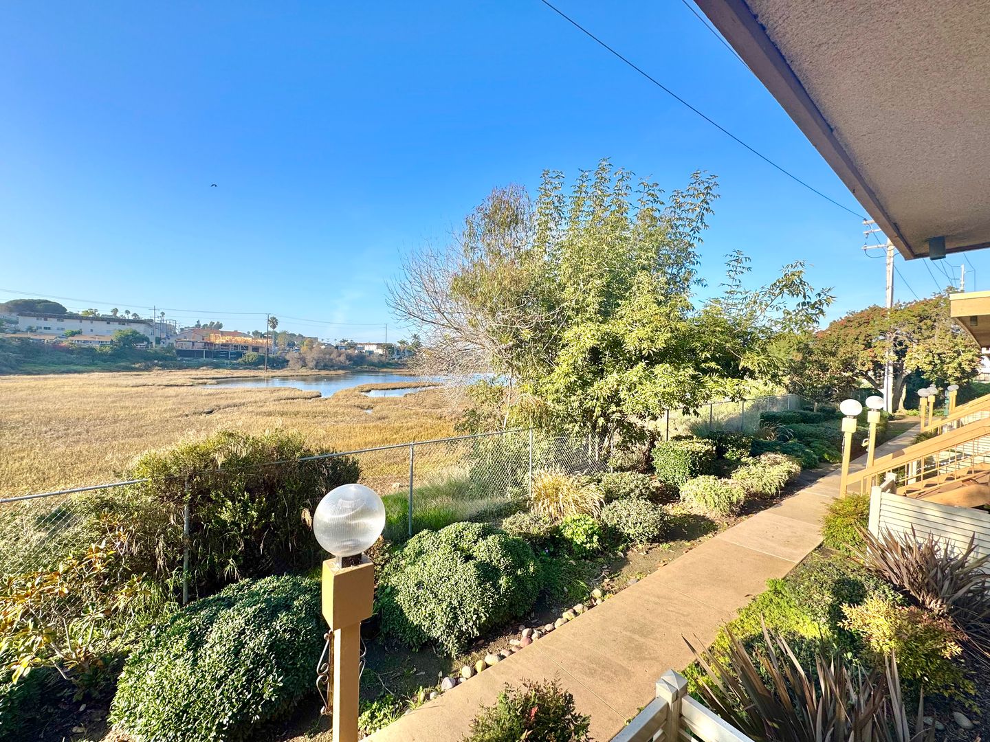 - Private balcony off living room + front porch with a view of Famosa Lagoon!