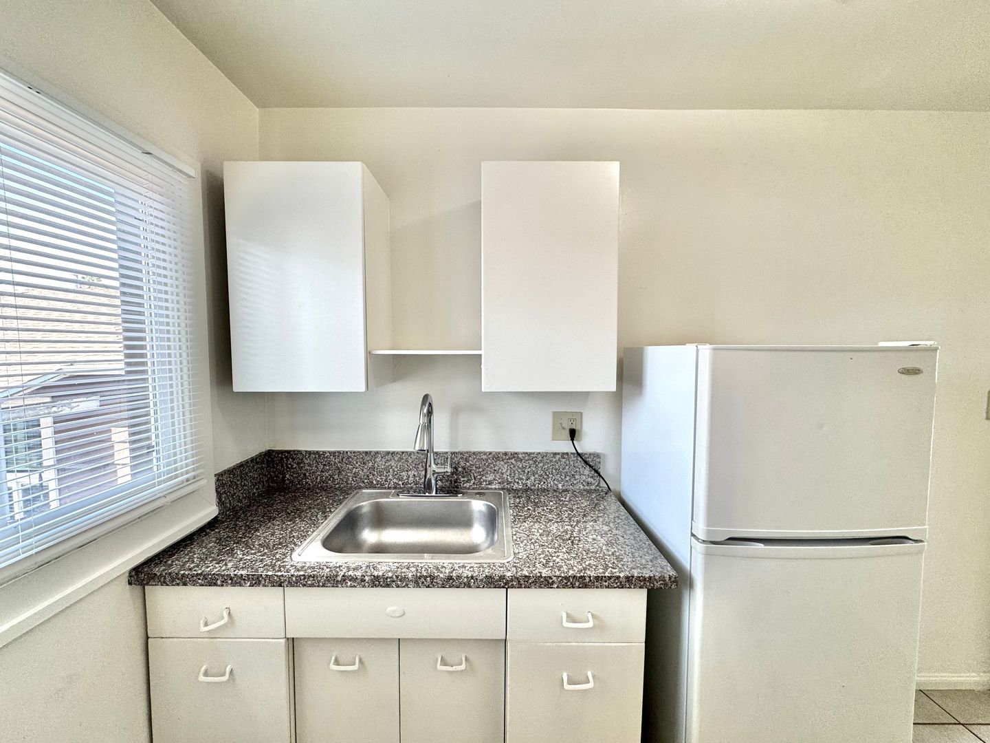 - Easy to clean tile flooring throughout