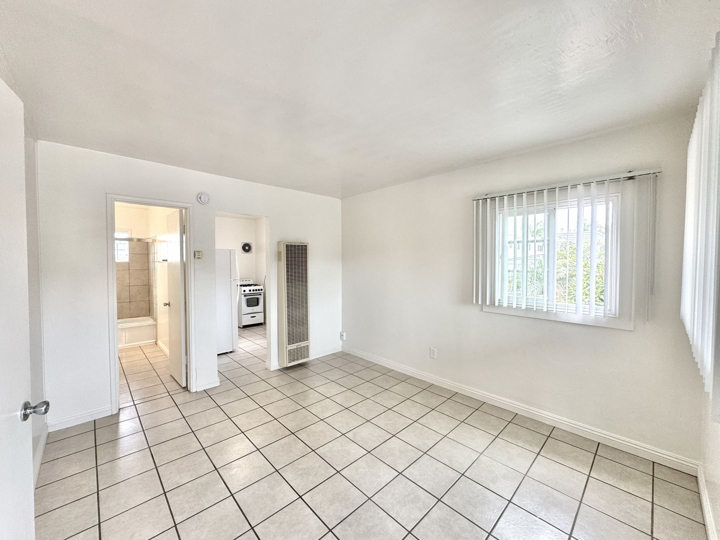 This adorable corner studio home gets the sun in the mornings and shady in the afternoons. Extra closet space in bathroom and room for a dining table in the separate kitchen. Close to the beach and a short distance to Newport Ave. Assigned parking available.
