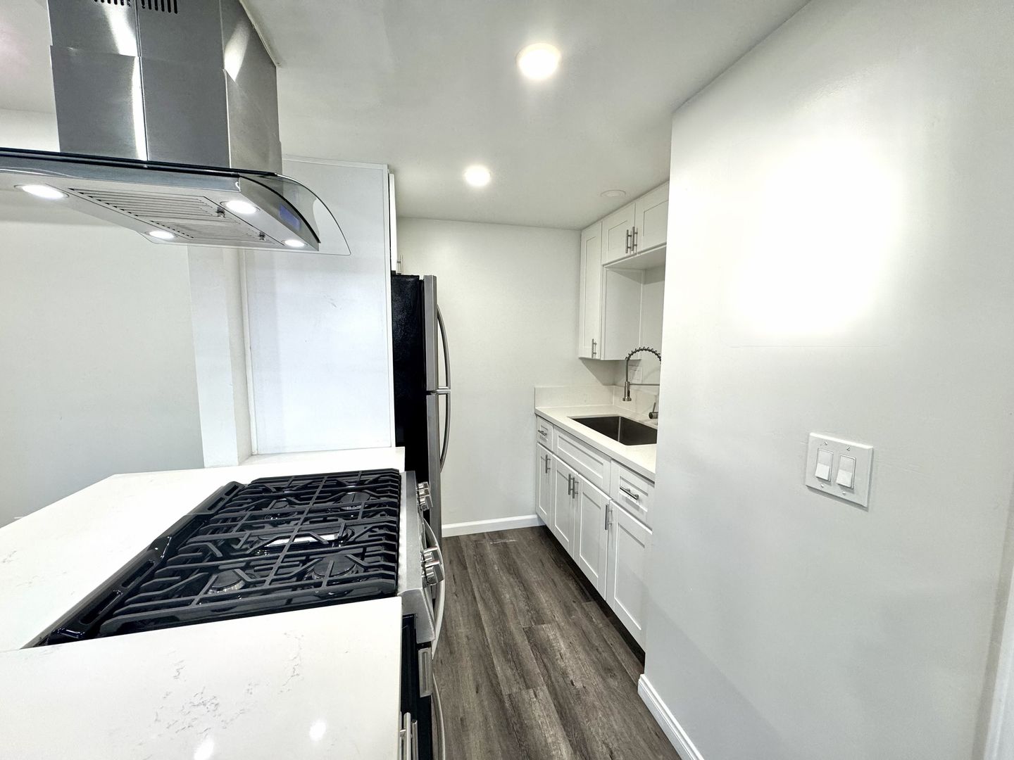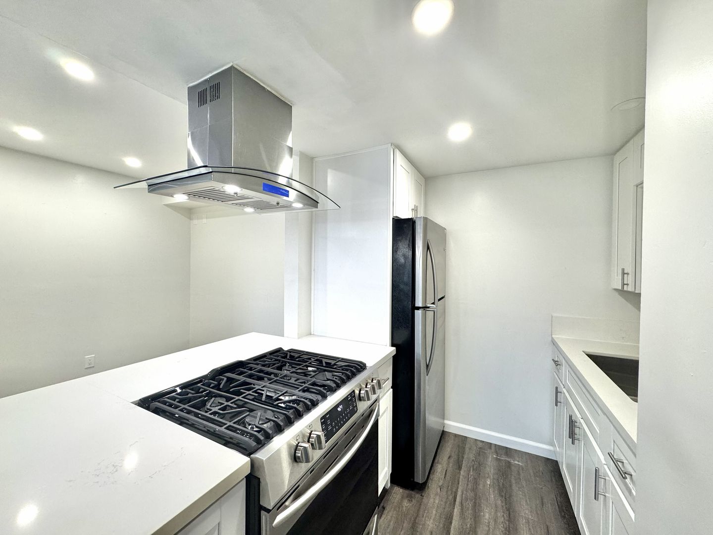 - Newer updated appliances include refrigerator and gas stove