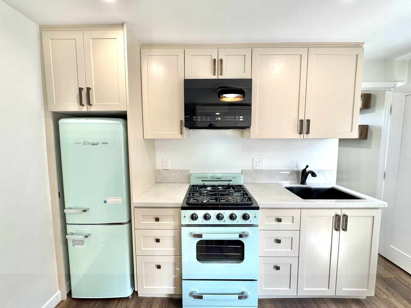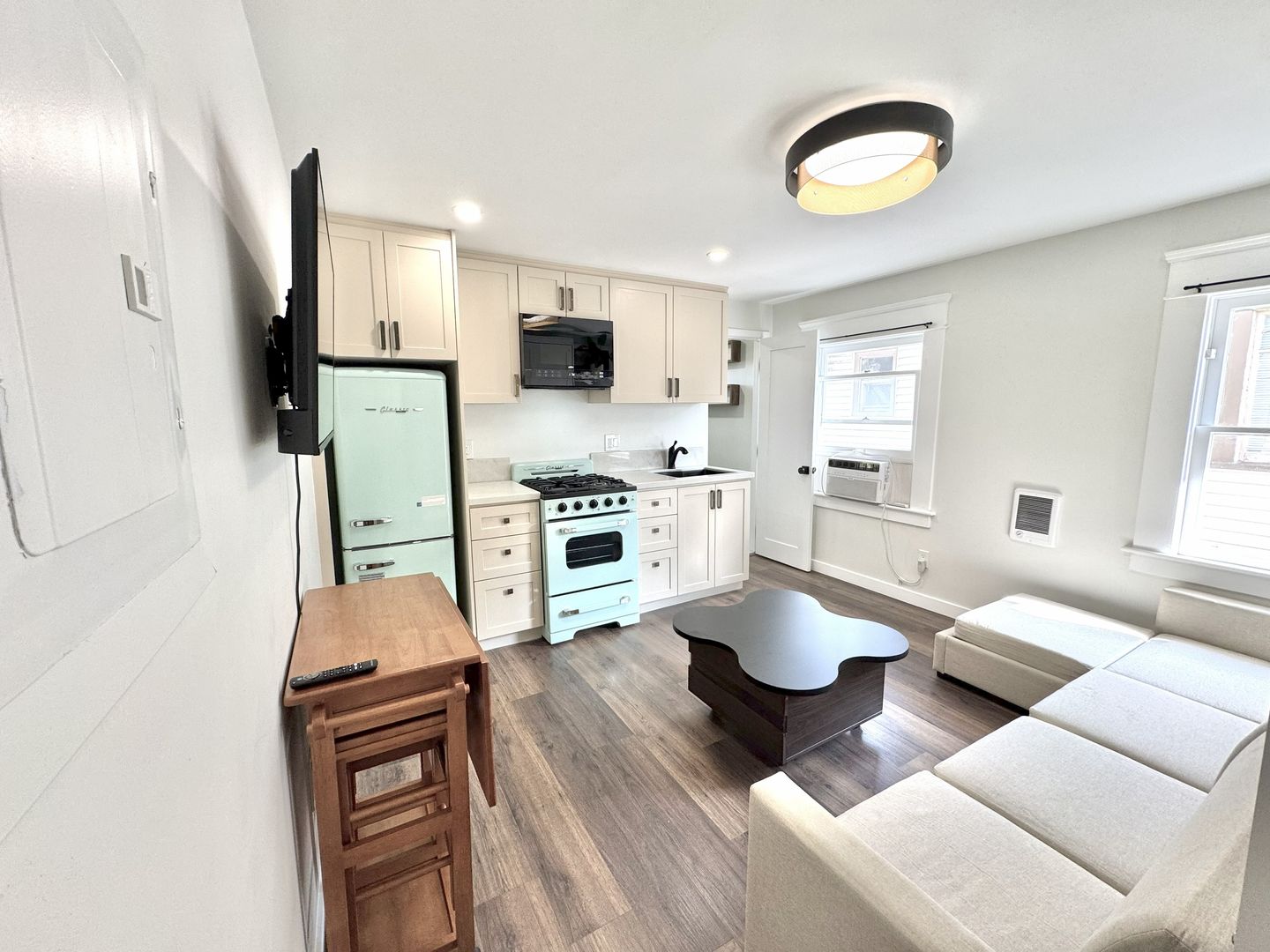 Welcome to 4074 Ingalls St #5 in Mission Hills! Step into timeless style and comfort in this beautifully updated and upstairs studio, 1-bathroom unit. Blending classic Craftsman character with modern touches, this light-filled home features easy-to-clean LVP flooring, and stunning MINT GREEN retro appliances that add a touch of vintage charm to the thoughtfully designed kitchen. Marble tile, a glass shower enclosure, and gold hardware make the bathroom feel classy and elegant.