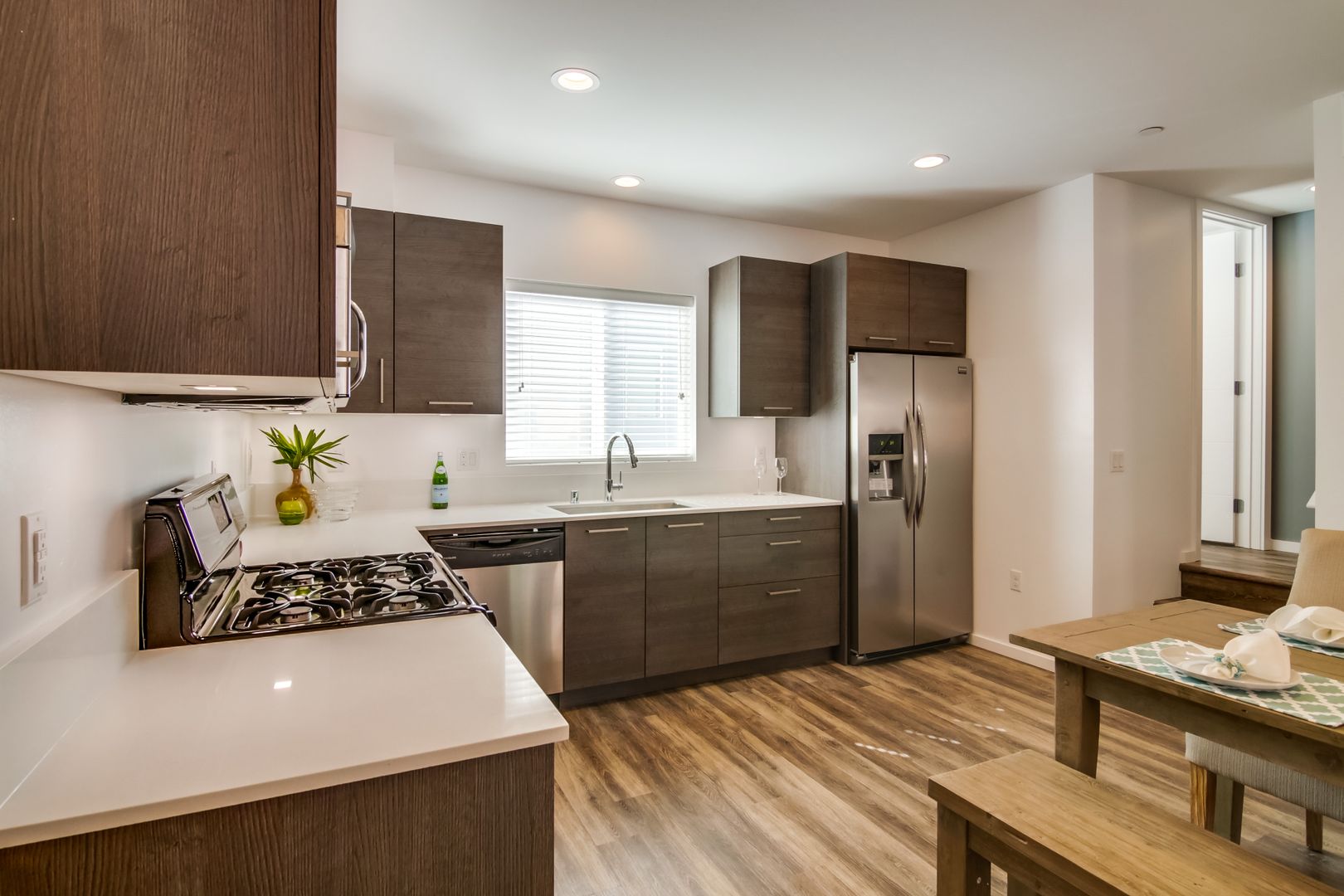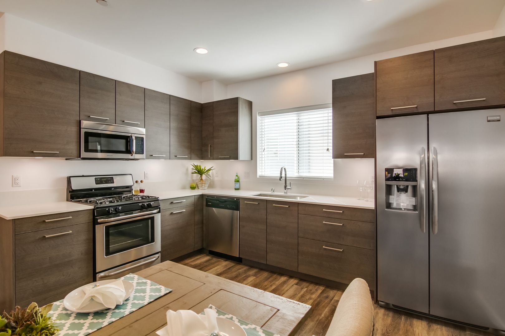 2BD + Office/Den, 2.5BA with attached 2 car garages. Three story townhome with bedrooms on the top floor, living room & open concept kitchen on the middle floor, and office and garage on ground floor. Laundry room with provided washer and dryer. Dishwasher, stainless steel appliances, fully networked apartments with a central control station in each town home.