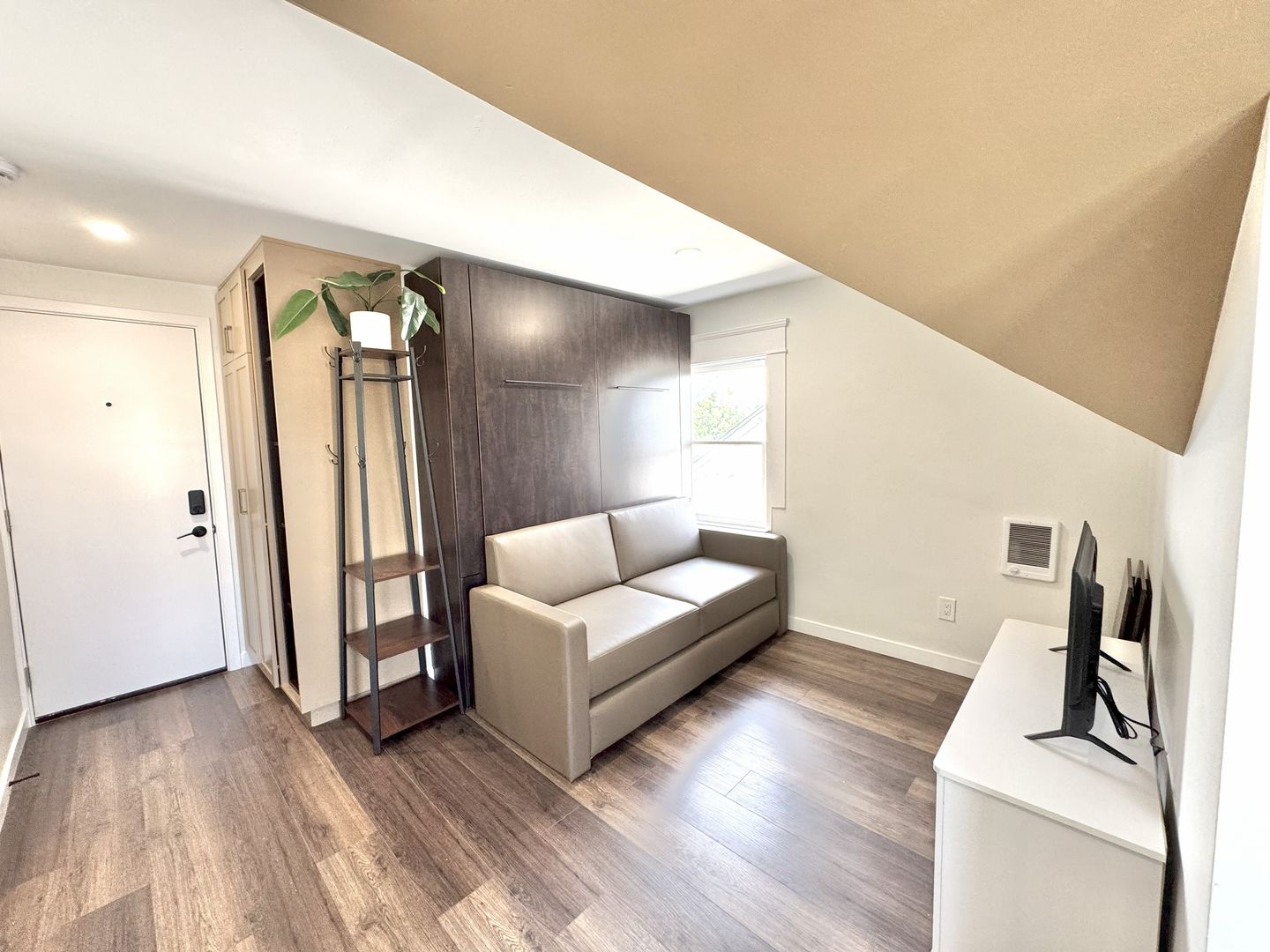 Welcome to 4074 Ingalls St #4 in Mission Hills! Step into timeless style and comfort in this beautifully updated and upstairs studio, 1-bathroom unit. Blending classic Craftsman character with modern touches, this light-filled home features easy-to-clean LVP flooring, and stunning retro appliances that add a touch of vintage charm to the thoughtfully designed kitchen. Marble tile, a glass shower enclosure, and gold hardware make the bathroom feel classy and elegant.